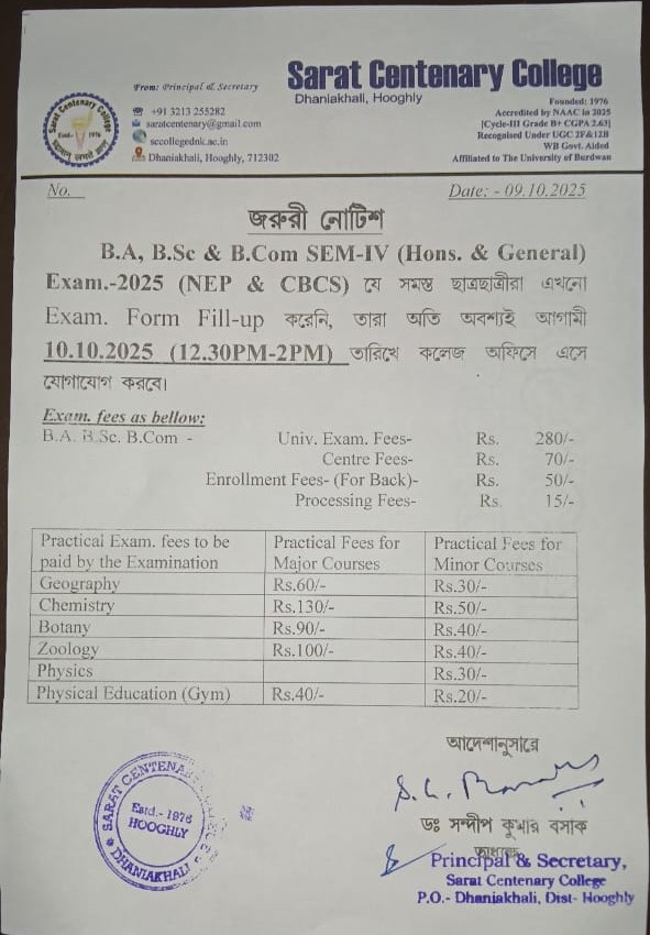 Notice for SEM-IV NEP & CBCS Form Fill up 2025 09/10/2025 ![]() |