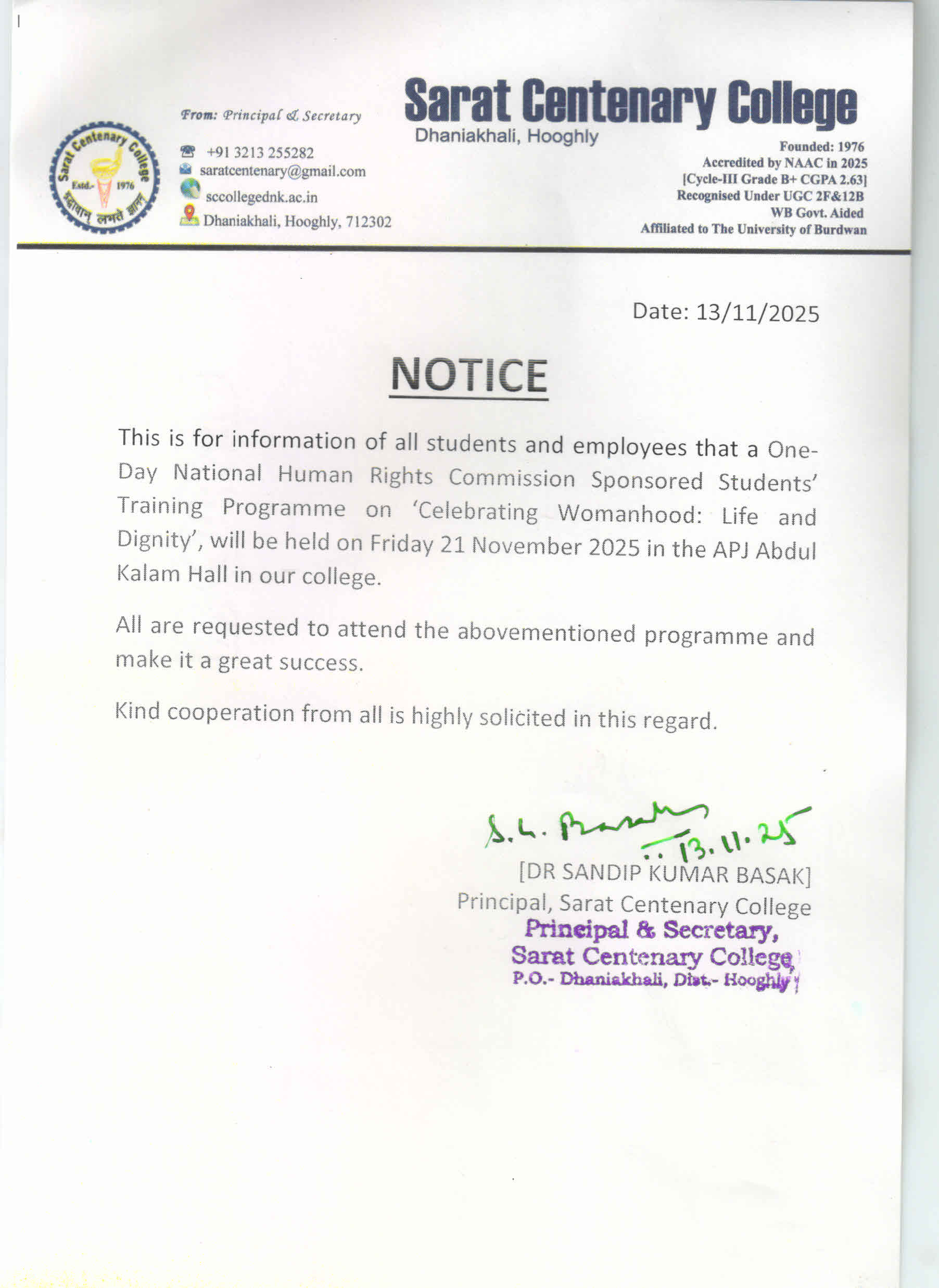 • Notice for Constitution Day 22/11/2025    Download