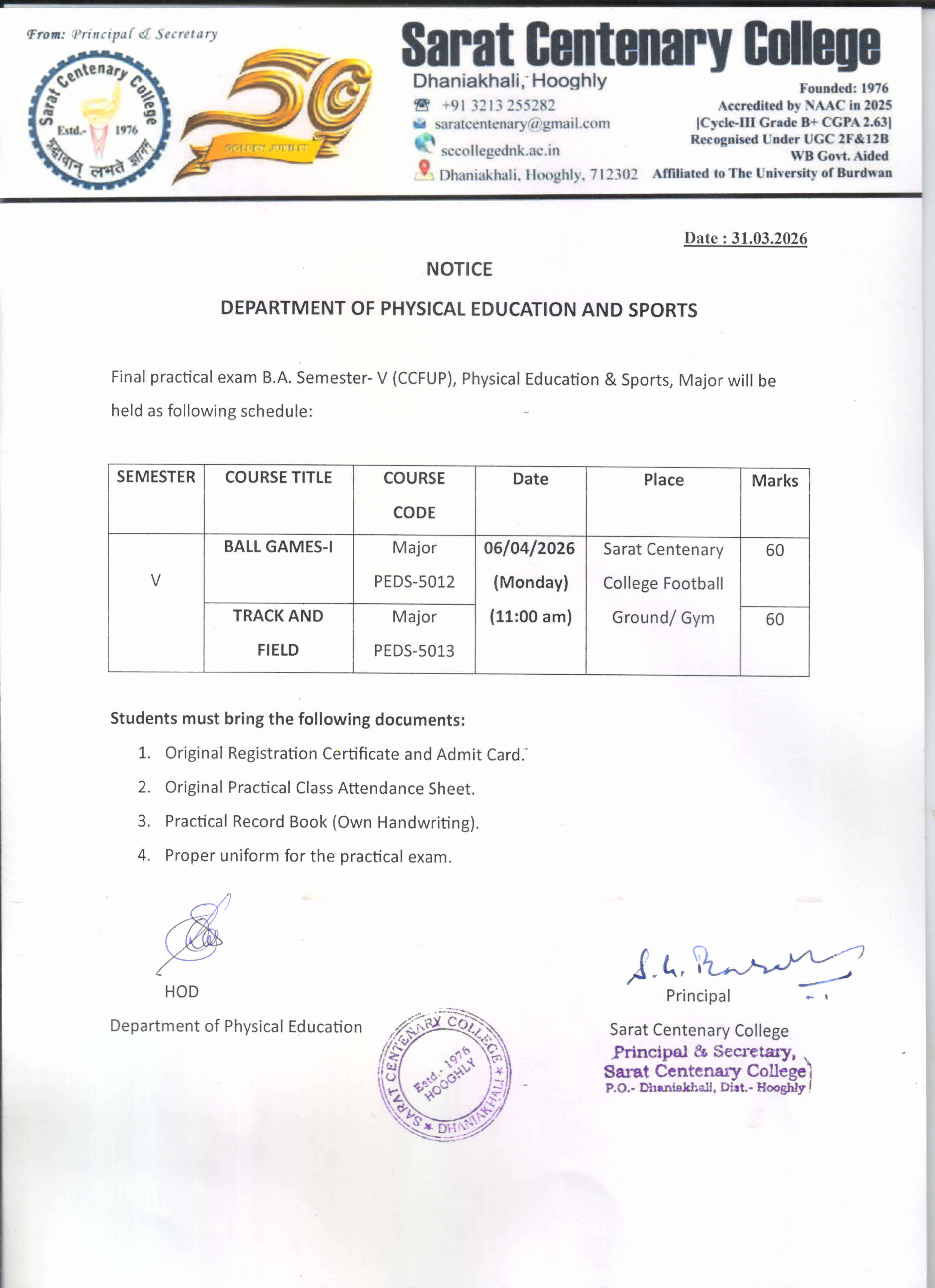 Notice for SEM-V Physical Education Practical Examination 2025 02/04/2026
