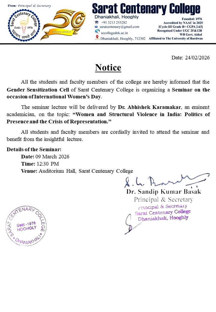 Notice for a Seminar Programme of International Woman's day on 06_03_2026 24/02/2026