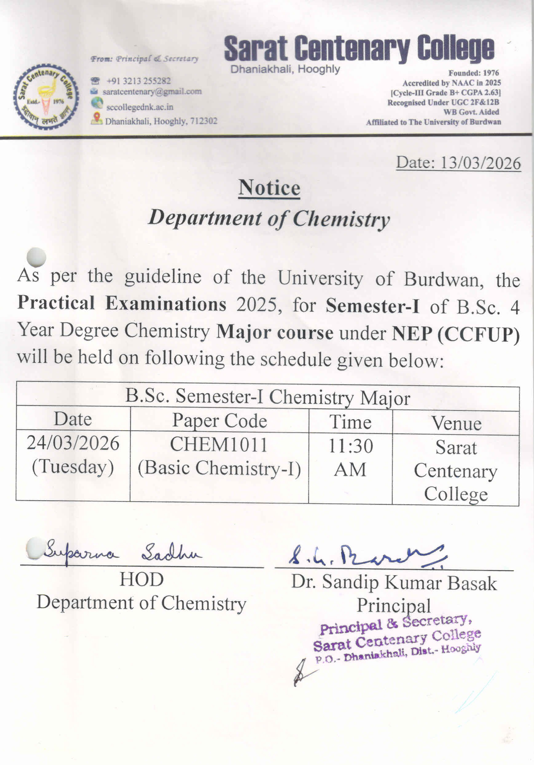 SEM III practical exam BSC 3YR/ 4 YR NEP 09/02/2026